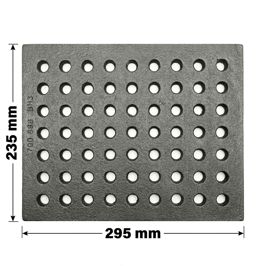 Ruszt żeliwny zespolony 23,5x29,5 cm to część wymienna popularnych żeliwnych francuskich wkładów kominkowych Invicta. Ruszt żeliwny 295 mm x 235 mm ważący ok. 4,5 kg, odlewany z żeliwa szarego, produkt o trwałym i solidnym wykonaniu.