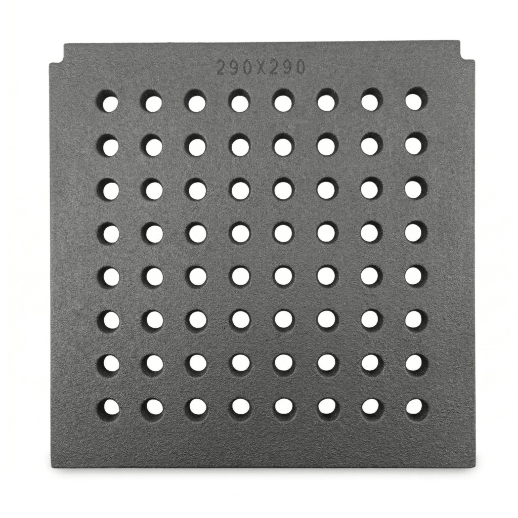 Nasz żeliwny ruszt jest odlewany w naturalnym procesie, dzięki czemu każdy egzemplarz zyskuje unikalną strukturę powierzchni. Drobne wypukłości, mikroszczeliny, wżery czy niewielkie nierówności są naturalnym efektem produkcji i nie stanowią wady technicznej. Wręcz przeciwnie – świadczą o autentyczności materiału i solidności wykonania, nie wpływając na wytrzymałość ani funkcjonalność produktu.