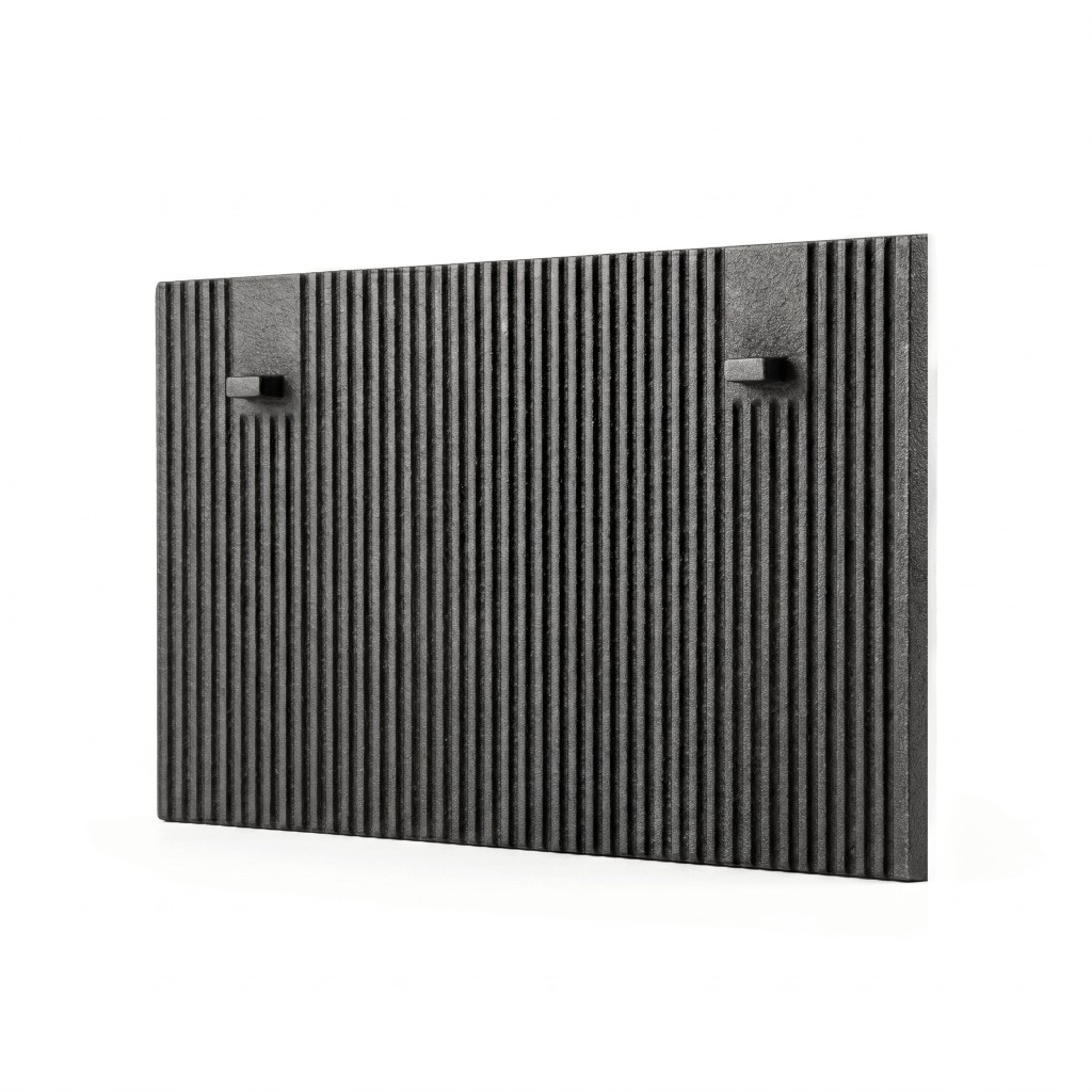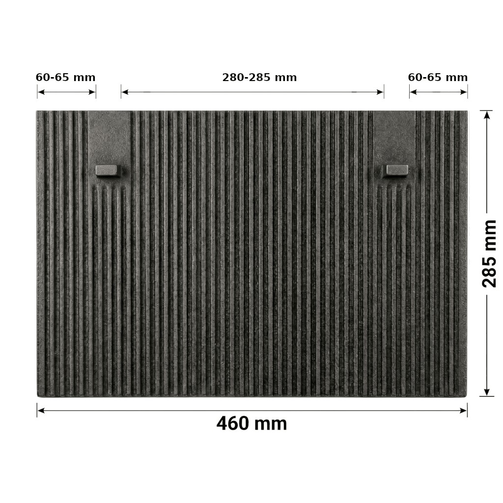Fabryczna tylna płyta żeliwna 46x28,5 cm to część wymienna popularnych żeliwnych francuskich wkładów kominkowych Invicta. Żeliwna płyta tylna 460 mm x 285 mm do wkładów kominkowych, odlewana z żeliwa szarego, produkt o trwałym i solidnym wykonaniu.