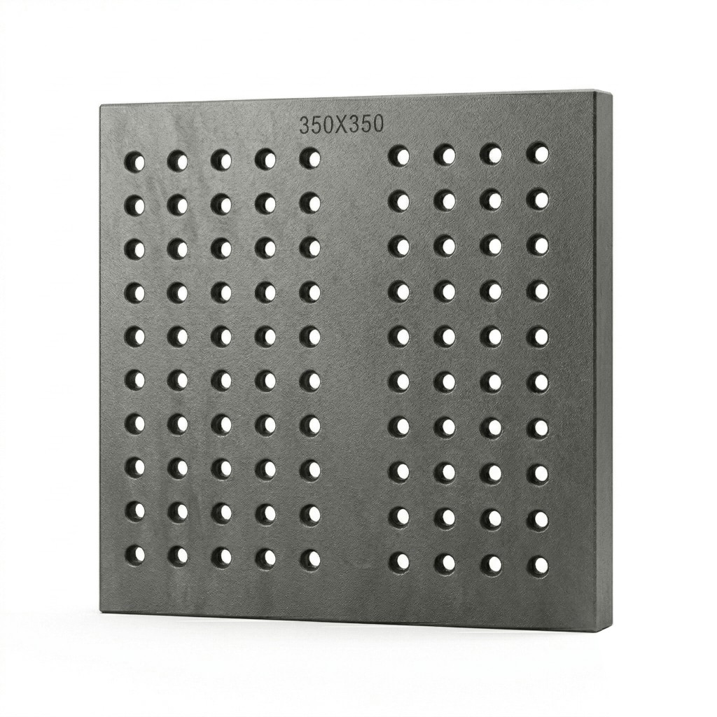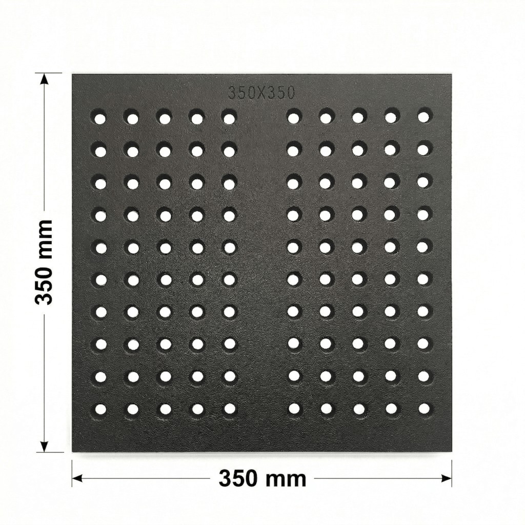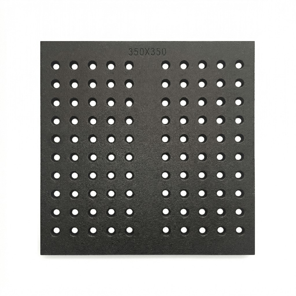 Ruszt żeliwny zespolony 35x35 cm to część wymienna popularnych żeliwnych francuskich wkładów kominkowych. Ruszt żeliwny 350 mm x 350 mm ważący ok. 9,6 kg, odlewany z żeliwa szarego, produkt o trwałym i solidnym wykonaniu.