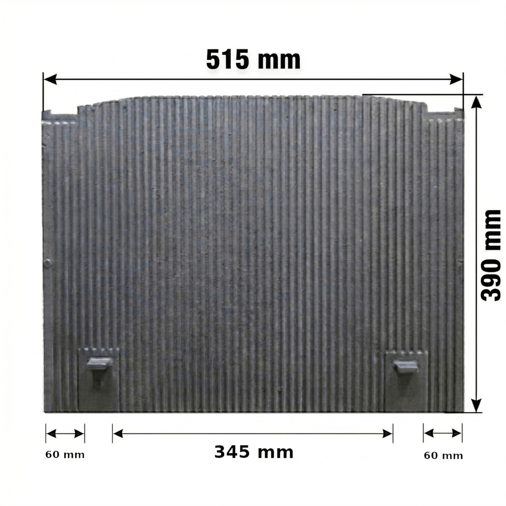 Fabryczna tylna płyta żeliwna 51,5x39 cm to część wymienna popularnych żeliwnych polskich wkładów kominkowych Nordflam. Żeliwna płyta tylna 515 mm x 390 mm do wkładów kominkowych, odlewana z żeliwa szarego, produkt o trwałym i solidnym wykonaniu.