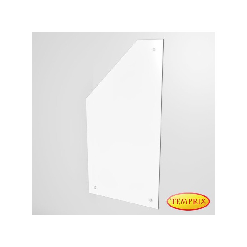 Płyta ochronna na ścianę ze szkła jak lód, model Halmstad Lewy to płyta wykonana ze szkła hartowanego o grubości 6 mm, służąca ochronie ściany w pobliżu pieca lub kominka przed nagrzewaniem.