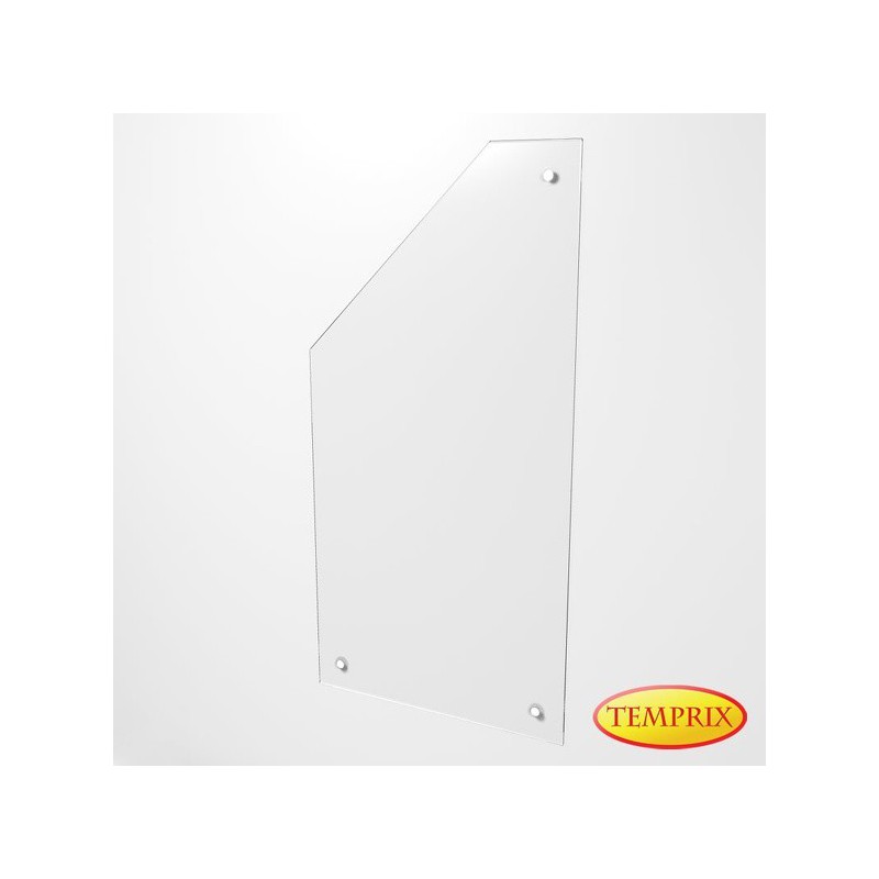 Płyta ochronna na ścianę ze szkła przezroczystego, model Halmstad Lewy to płyta wykonana ze szkła hartowanego o grubości 6 mm, służąca ochronie ściany w pobliżu pieca lub kominka przed nagrzewaniem.