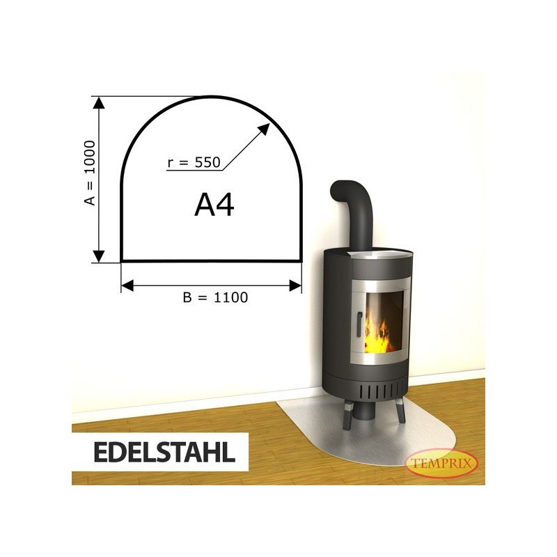 Podstawa kominkowa ze stali nierdzewnej A4 o wymiarach 1000x1100 mm to podstawa wykonana z bardzo twardej wysokiej jakościowo stali o grubości 1 mm. Nasze podstawy cechuje estetyczne wykonanie oraz duża wytrzymałość, nawet do 850 kg.