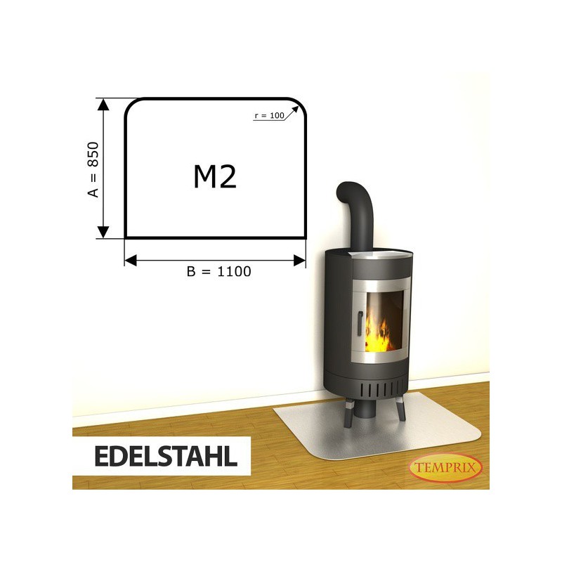 Podstawa kominkowa ze stali nierdzewnej M2 o wymiarach 850x1100 mm to podstawa wykonana z bardzo twardej wysokiej jakościowo stali o grubości 1 mm. Nasze podstawy cechuje estetyczne wykonanie oraz duża wytrzymałość, nawet do 850 kg.