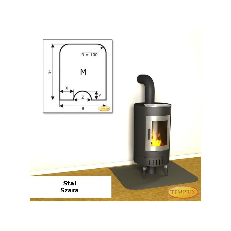 Podstawa przed kominek na wymiar ze stali szarej model MS5 to stalowa podstawa wykonana z bardzo twardej wysokiej jakościowo stali o grubości 2 mm.