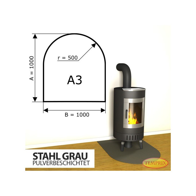 Podstawa kominkowa ze stali szarej A3 o wymiarach 1000x1000 mm to podstawa wykonana z bardzo twardej wysokiej jakościowo stali o grubości 2 mm. Nasze podstawy cechuje estetyczne wykonanie oraz duża wytrzymałość, nawet do 850 kg.