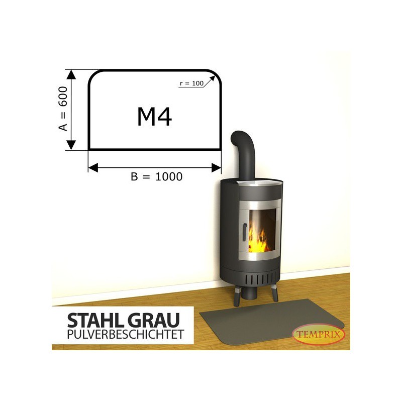 Podstawa kominkowa ze stali szarej M4 o wymiarach 600x1000 mm to podstawa wykonana z bardzo twardej wysokiej jakościowo stali o grubości 2 mm. Nasze podstawy cechuje estetyczne wykonanie oraz duża wytrzymałość, nawet do 850 kg.