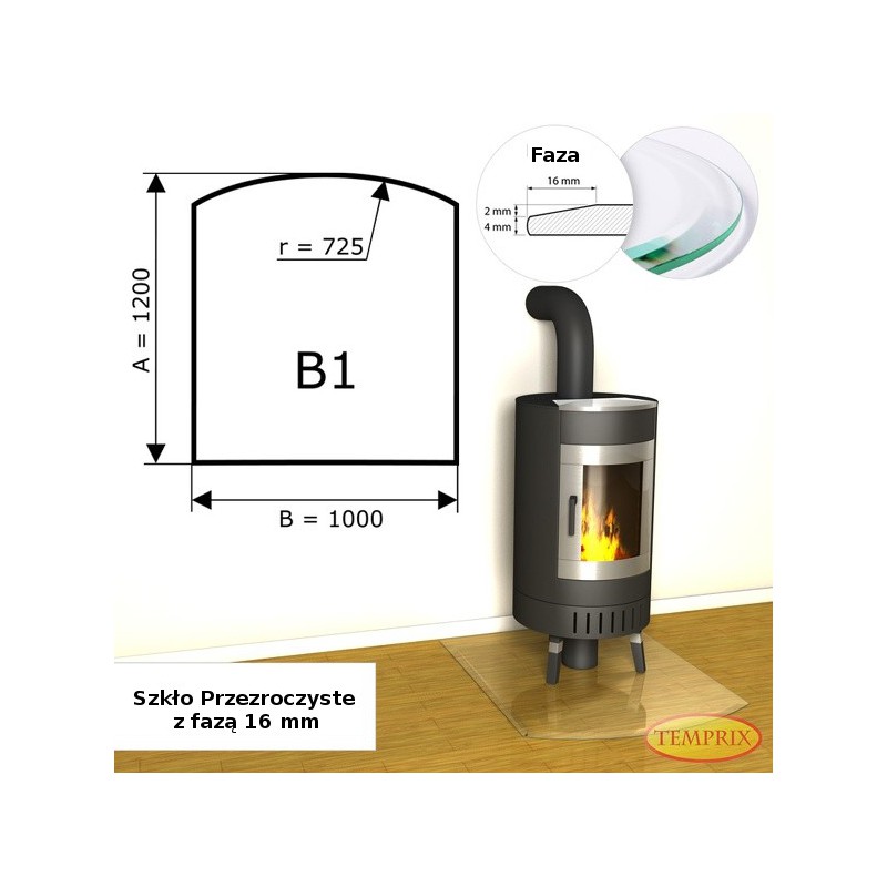 Podstawa kominkowa z fazą ze szkła przezroczystego B1 o wymiarach 1200x1000 mm to podstawa wykonana z bardzo odpornego na zarysowania bezpiecznego szkła hartowanego wysokiej jakości o grubości 6 mm. Nasze podstawy cechuje estetyczne wykonanie oraz duża wytrzymałość, nawet do 650 kg.