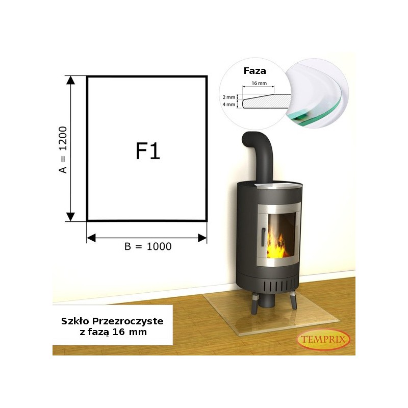 Podstawa kominkowa z fazą ze szkła przezroczystego F1 o wymiarach 1200x1000 mm to podstawa wykonana z bardzo odpornego na zarysowania bezpiecznego szkła hartowanego wysokiej jakości o grubości 6 mm. Nasze podstawy cechuje estetyczne wykonanie oraz duża wytrzymałość, nawet do 650 kg.