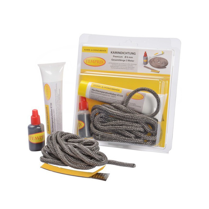 Produkt z kategorii uszczelki-kominkowe - Zestaw naprawczy do szyby kominkowej Temprix Ø 6 mm Premium + klej jest wart swojej ceny. Towar bardzo dobrej jakości.